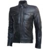 This ultra-stylish black leather jacket with a small collar is guaranteed to make every head turn when you walk in the room wearing it. This is the perfect fit for your graceful wardrobe and will stay with you for a long time. Three pockets are provided, two at the waist and one on the chest to solve your space-related issues. The comfortable and hip small collar makes it a suitable outfit for all occasions i.e. date night, a party, friends get together or a business meeting. YKK zipper on the front closure, cuffs and waist side pockets in a contrasting copper color enhance the beauty of this jacket.